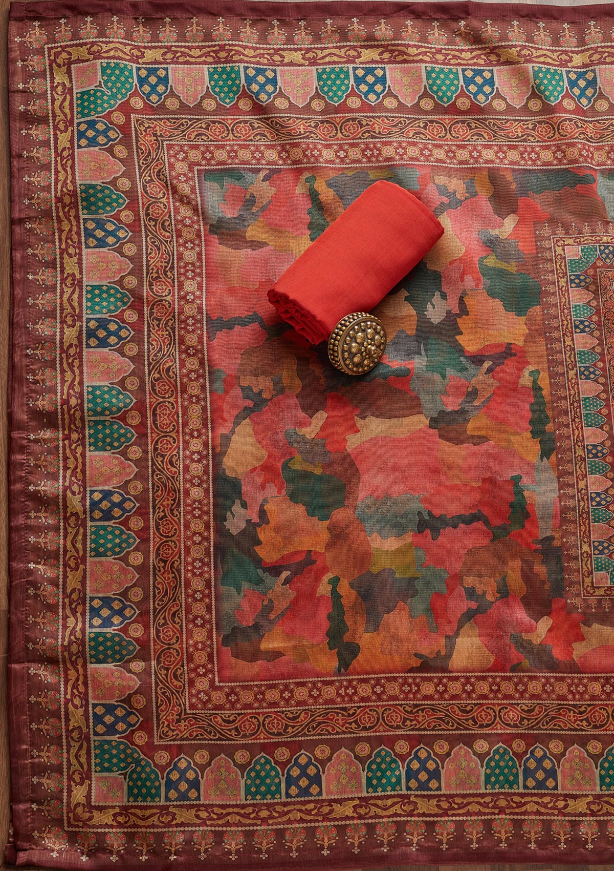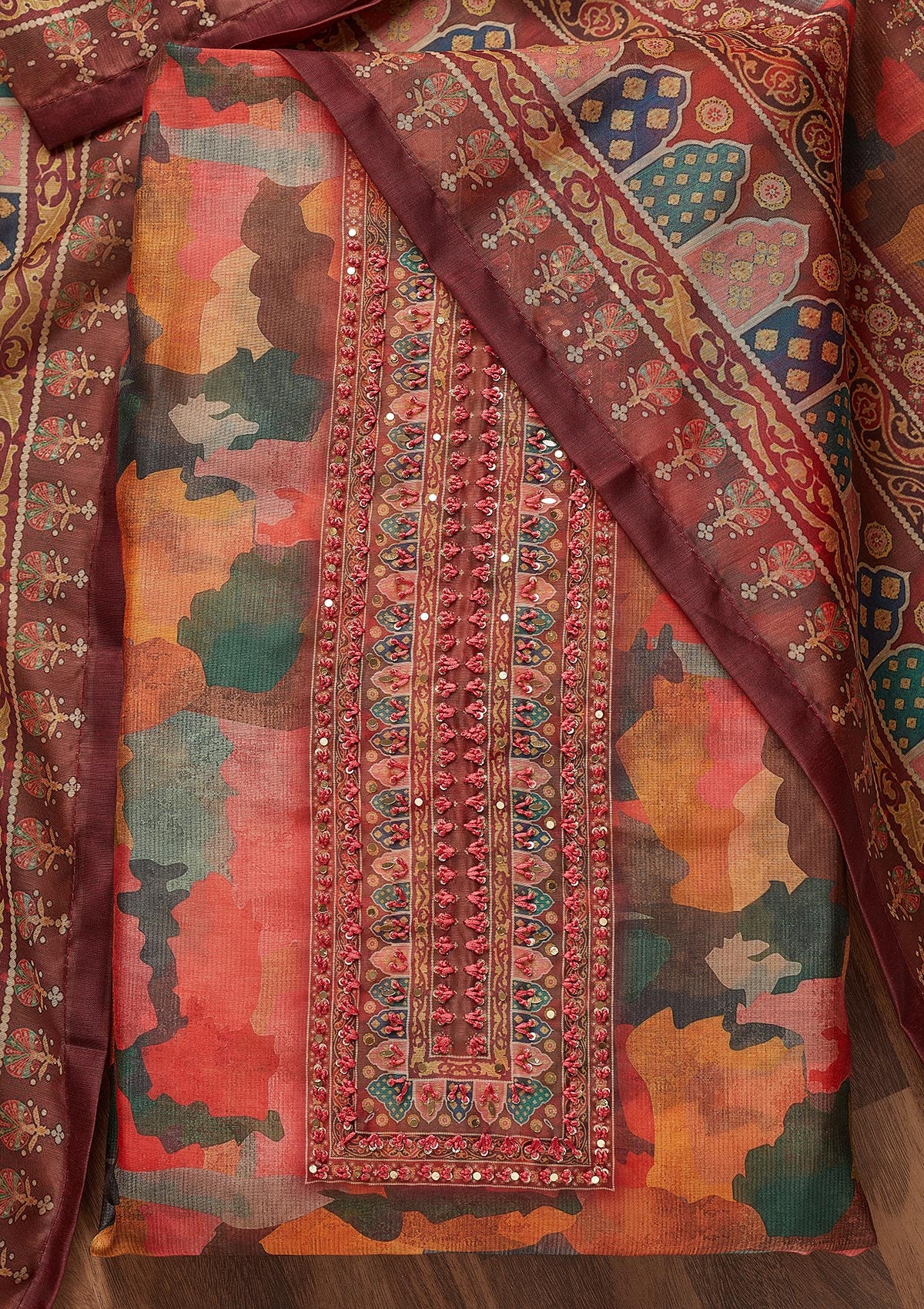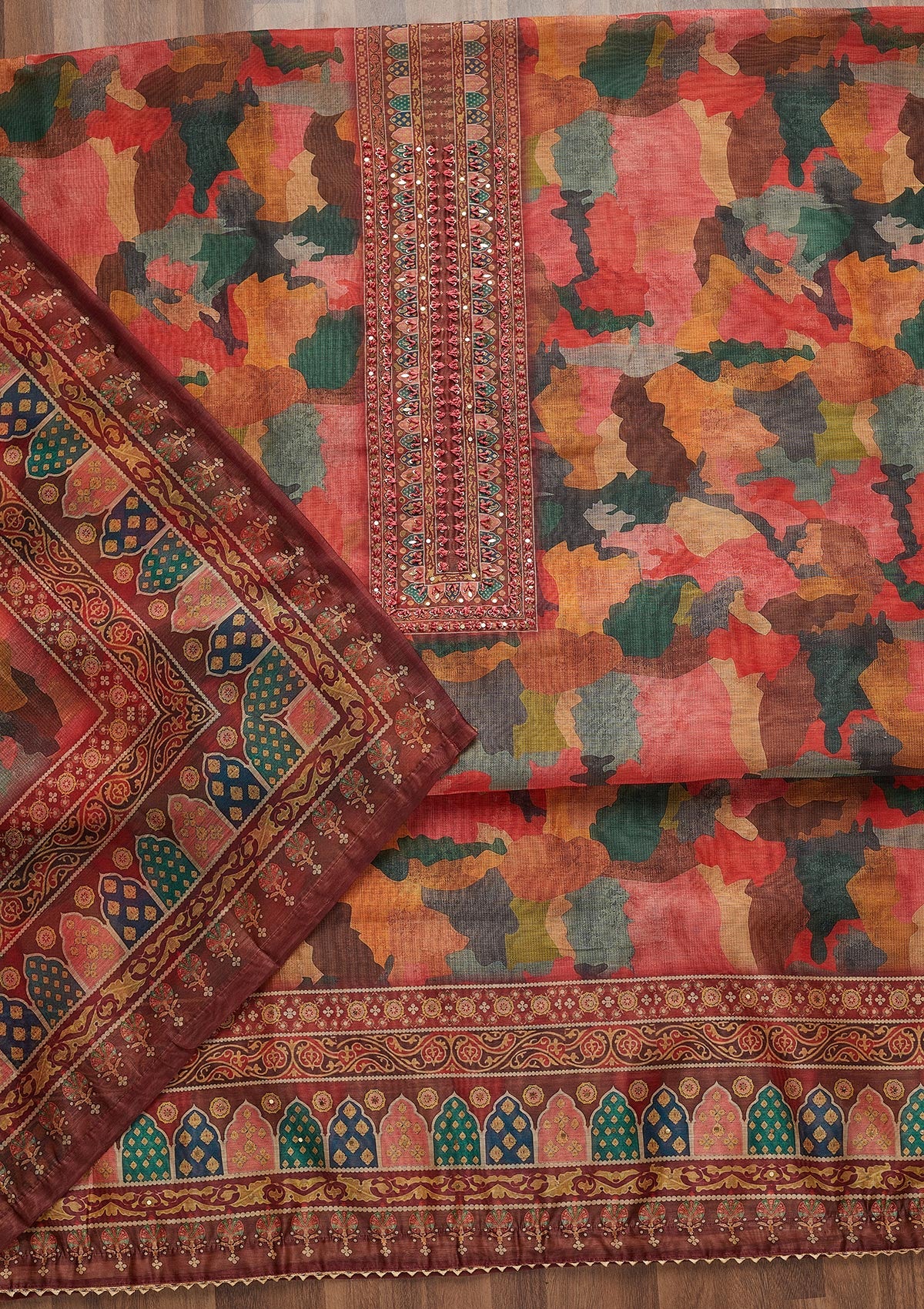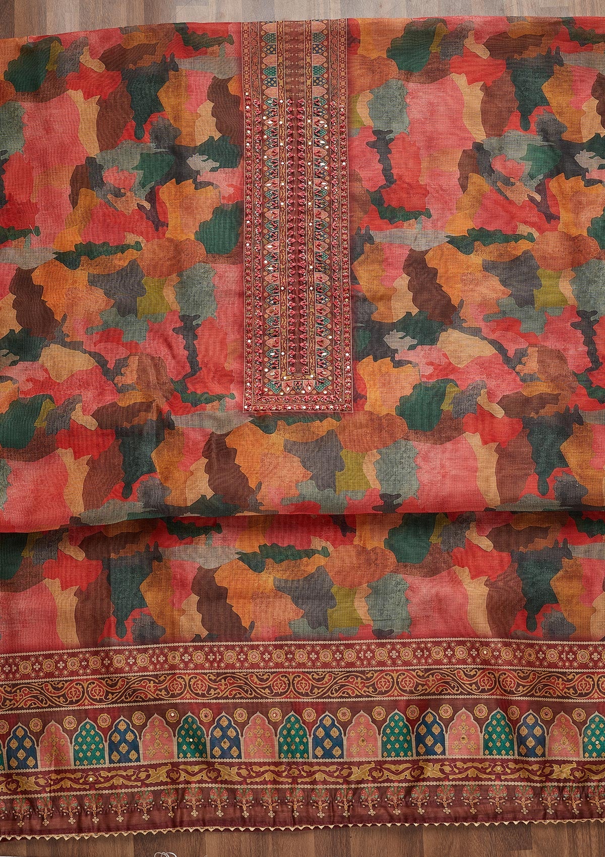 Multi Unstitched Salwar Suit in Chanderi fabric, enhanced with elegant Threadwork embroidery, ensuring the Koskii promise of premium quality.